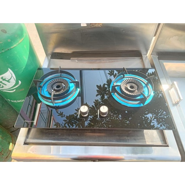 JZY_H8299 Flanged Tempered Glass Double Gas Stove